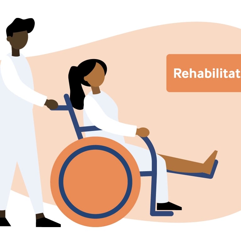 Various body braces, supports, and aids for rehabilitation and mobility.